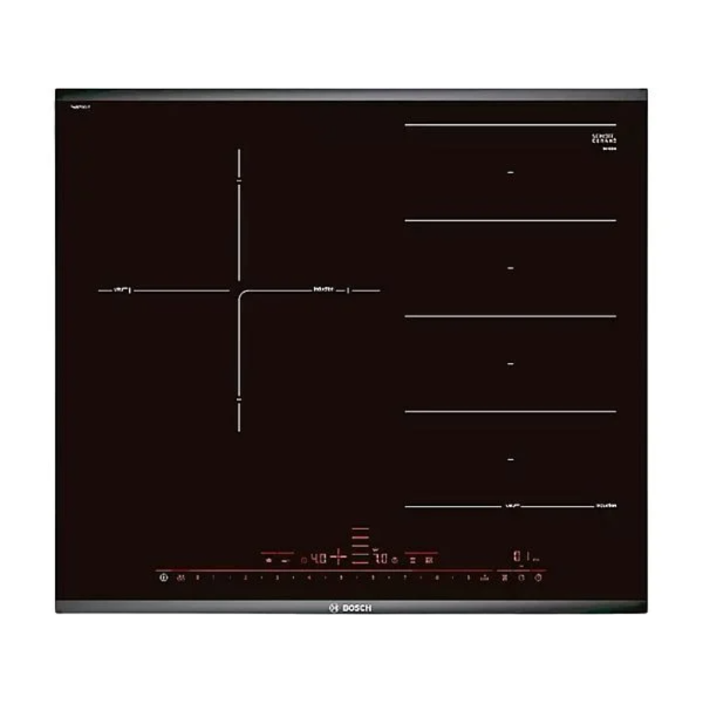 La Placa de Inducción Bosch PXJ675DC1E cuenta con cuatro zonas de cocción con tecnología de inducción que permiten una cocción rápida y precisa. Su superficie está fabricada en cristal vitrocerámico, que facilita la limpieza. Dispone de panel táctil para un control de la temperatura y los tiempos de cocción, lo que permite una selección rápida y exacta. Incorpora diversas funciones como el PowerBoost, que aumenta la potencia de cocción en zonas específicas durante un período determinado, y el temporizador que permite programar el tiempo de cocción de cada zona. La placa también presenta funciones de reconocimiento de utensilios y apagado automático. La instalación requiere conexión eléctrica, siendo compatible con sistemas de inducción estándar. La Placa de Inducción Bosch PXJ675DC1E cumple con las normativas de eficiencia energética, contribuyendo a un menor consumo de energía. Además, se puede utilizar en combinación con campanas extractoras de la misma marca, facilitando un sistema de cocción integrado.