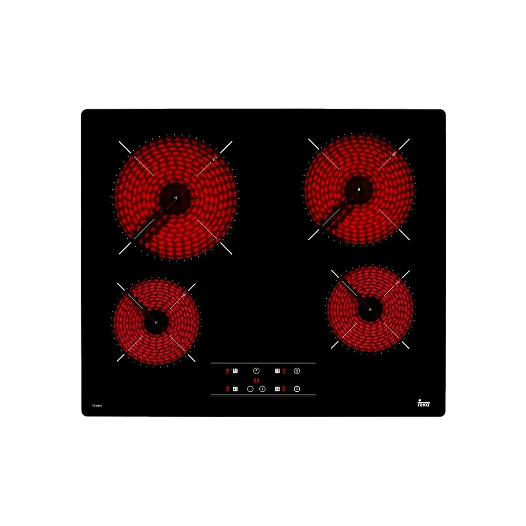La Placa Vitrocerámica 4 Zonas, 60 cm, Zona Grande 21 cm, Touch Control, Negra Teka TB 6415 está diseñada para una instalación empotrada en cocinas. Dispone de cuatro zonas de cocción, incluyendo una zona de gran tamaño de 21 cm. Su sistema de control táctil permite la selección de funciones mediante la interacción directa con la superficie de la placa. La superficie vitrocerámica facilita la limpieza, dado que ofrece un acabado liso. Esta placa puede conectarse a sistemas eléctricos convencionales y funciona mediante resistencias eléctricas que generan calor. La distribución uniforme del calor en las zonas de cocción asegura un calentamiento consistente. La placa se adapta a diferentes tipos de utensilios de cocina compatibles con cocción eléctrica. El diseño de la placa incluye indicadores de calor residual, que muestran si la superficie está caliente tras su uso. Las medidas de seguridad incluyen sistemas de bloqueo y desconexión automática. La Placa Vitrocerámica Teka TB 6415 es adecuada para usos generales de cocción y no incluye elementos adicionales como parrillas o accesorios. Las especificaciones técnicas son compatibles con los estándares eléctricos europeos, garantizando su funcionamiento en conexiones eléctricas adecuadas. Asegúrese de seguir las instrucciones de instalación y uso para un rendimiento óptimo.