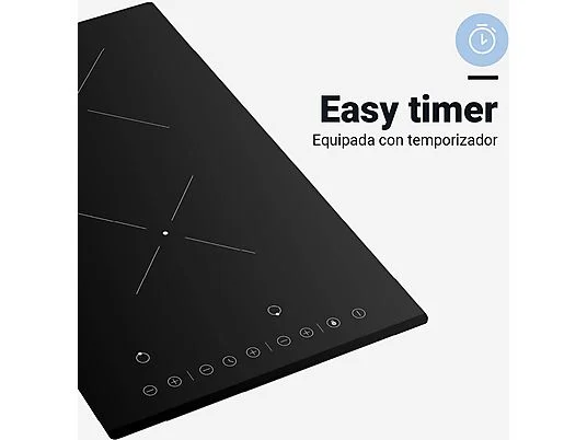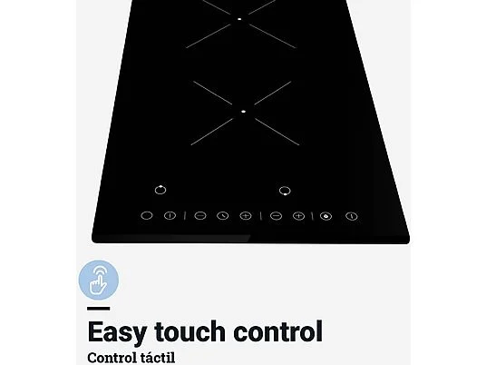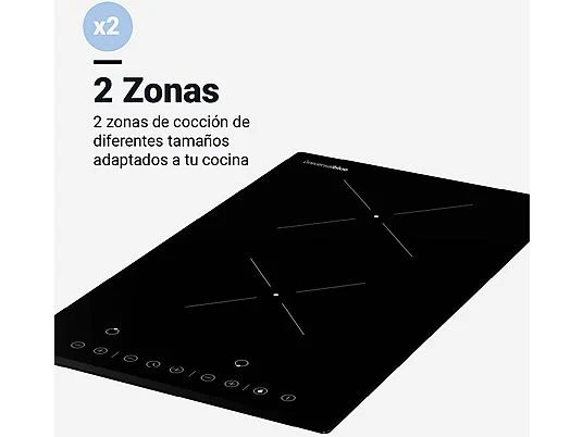 La Placa Vitrocerámica 2 Zonas 30 cm Negra UniversalBlue VEGA 6030B presenta un diseño compacto con dos zonas de cocción. Este dispositivo se caracteriza por un sistema de funcionamiento por inducción que permite calentar recipientes de metal compatibles. La superficie está fabricada en vitrocerámica, un material apto para resistir altas temperaturas y fácil de limpiar. El control de temperatura se realiza a través de mandos táctiles, situados en la parte frontal, facilitando la operación del usuario. La placa cuenta con indicadores luminosos que muestran el estado de las zonas de cocción. Dispone de un sistema de seguridad con apagado automático y protección contra el sobrecalentamiento, elementos diseñados para minimizar riesgos durante su uso. Tiene una potencia total que varía según la configuración de las zonas, permitiendo adaptarse a las necesidades de cocción. Esta placa es compatible con utensilios de cocina adecuados para inducción, lo que debe tenerse en cuenta al seleccionar el material de los recipientes. La instalación requiere conexión a una fuente de electricidad y debe realizarse de acuerdo con las normativas correspondientes. Este modelo es un componente de cocina que puede integrarse en diferentes tipos de mobiliario, siempre considerando las especificaciones de instalación y uso.